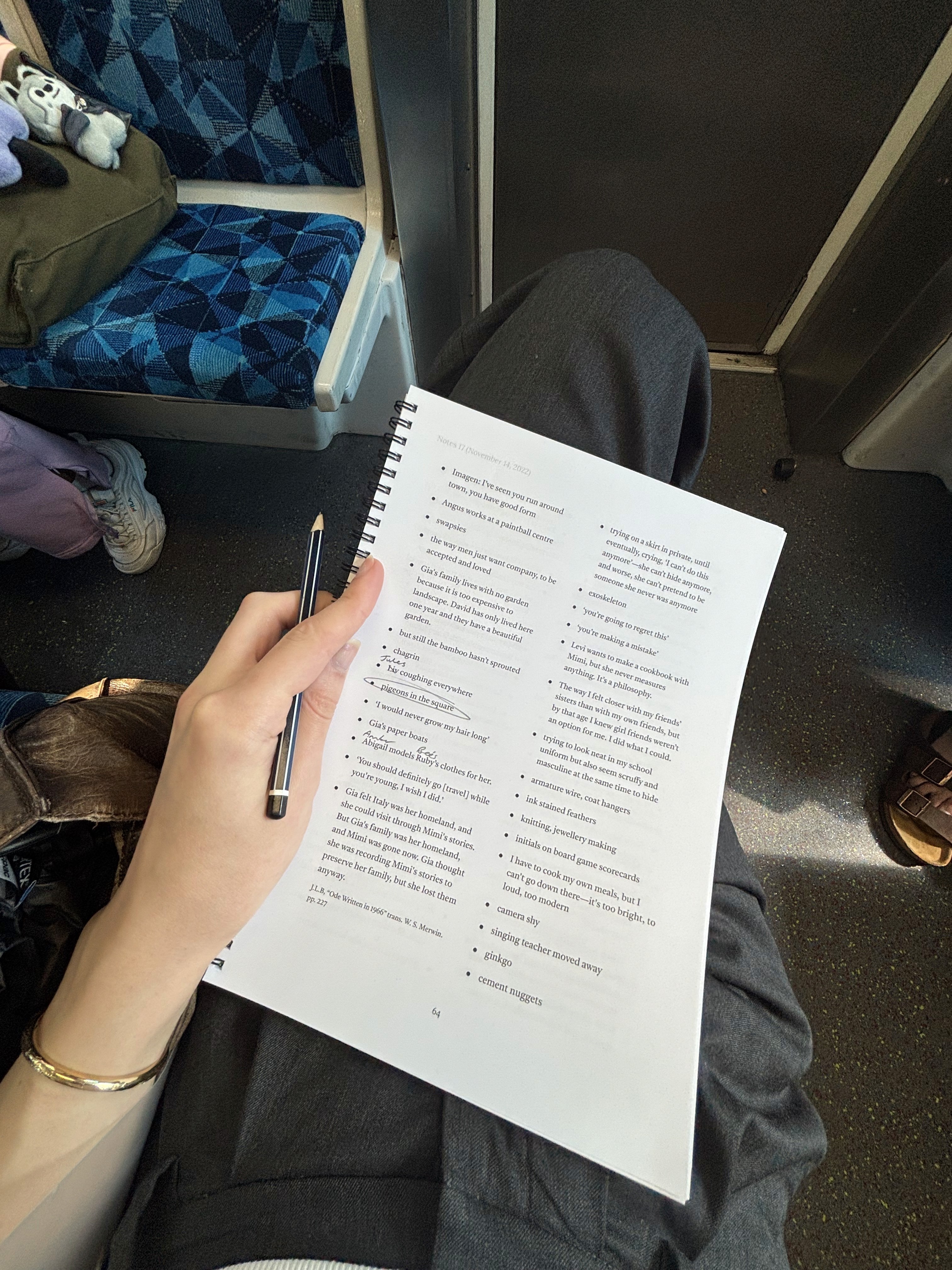 Using a pencil, I circled everything I resonated with: words, phrases, notes relating to the tone, characters, etc.