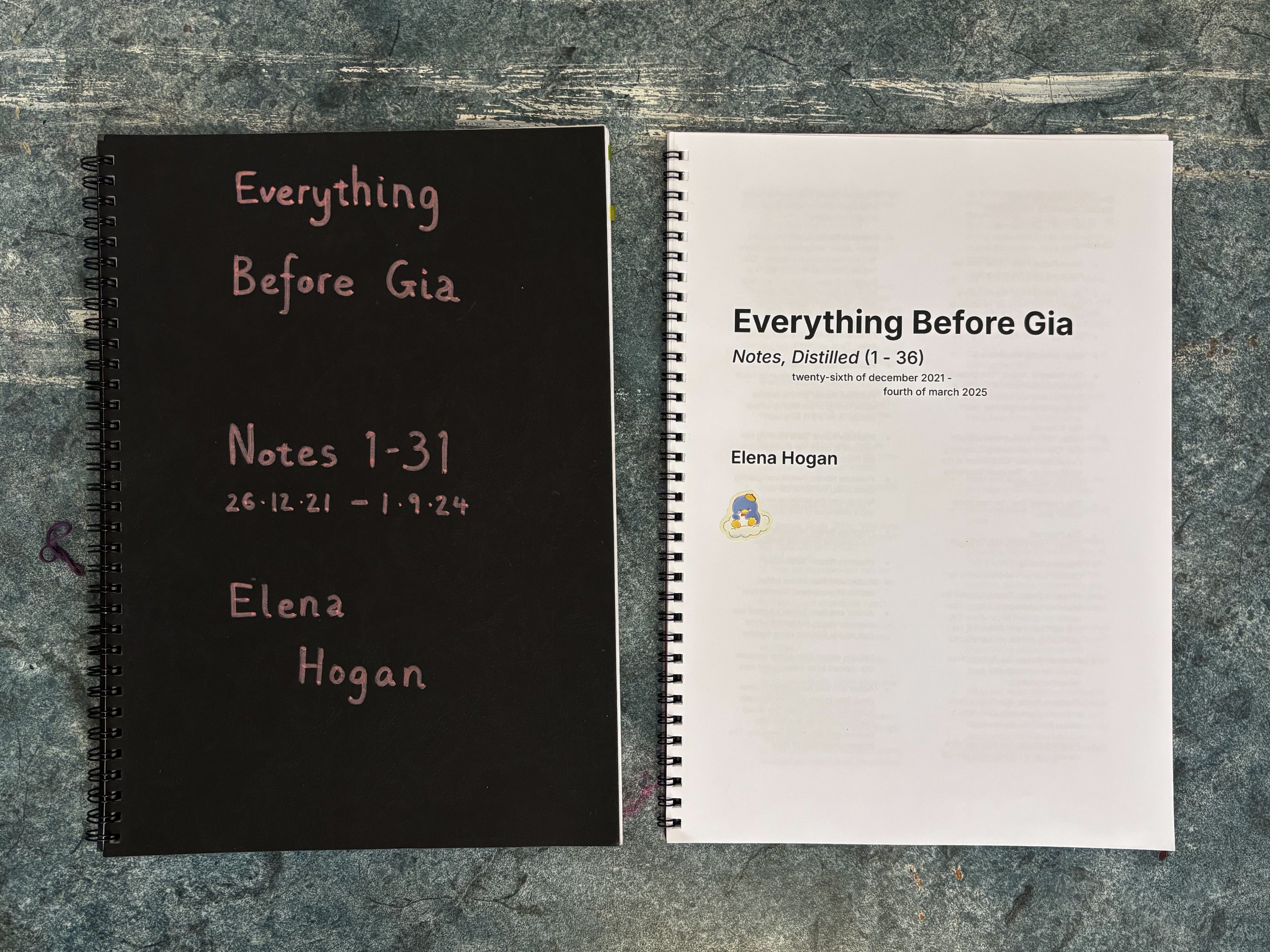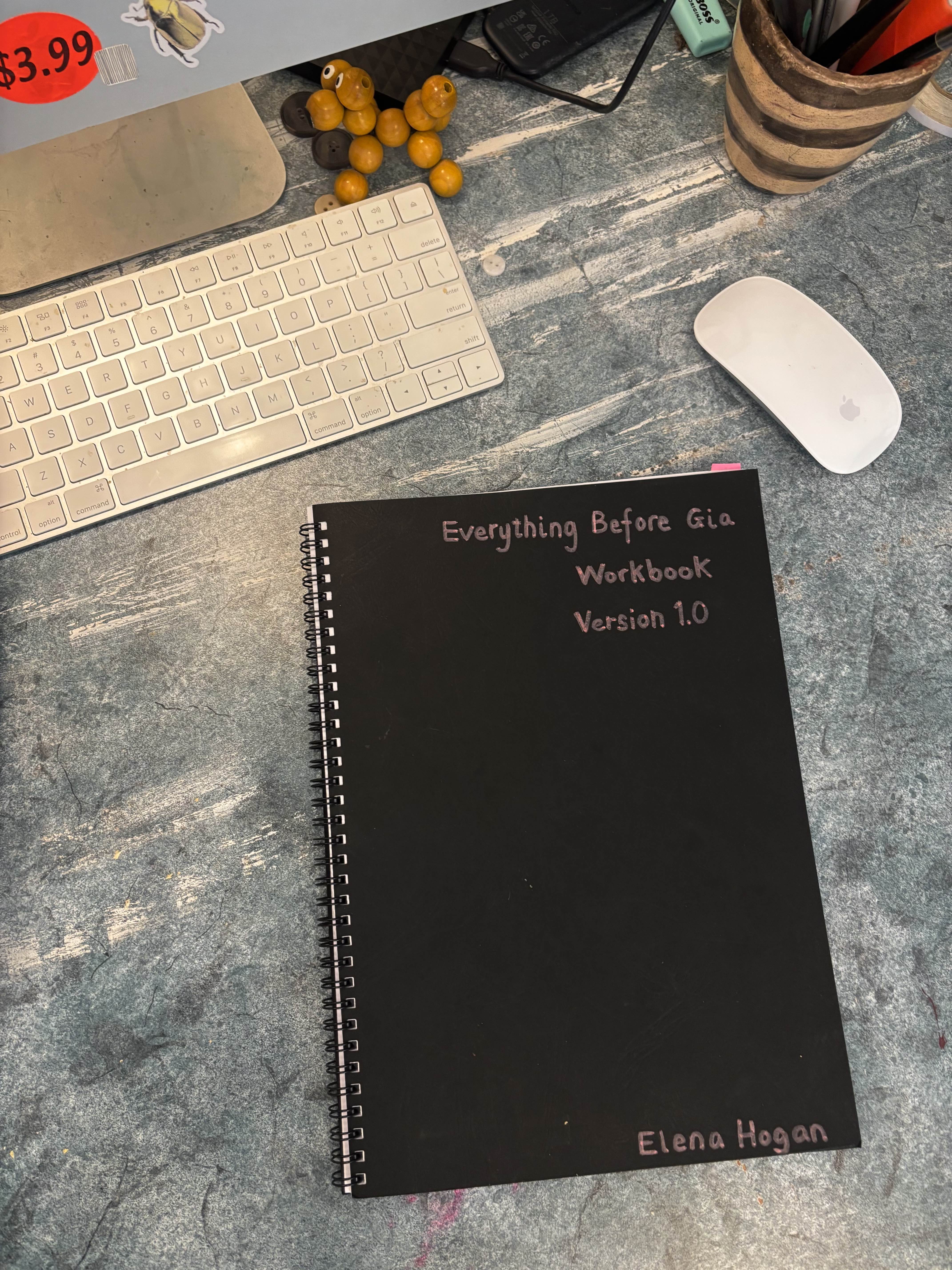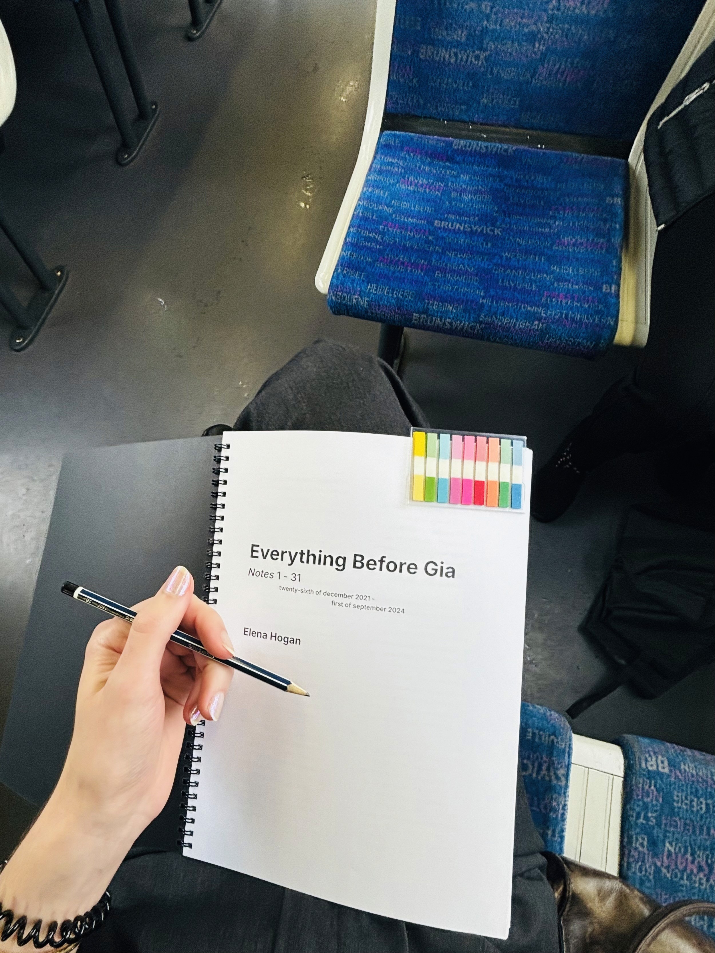 The first thing I wanted my workbook to include was a selection of ideas that had been overlooked in the process of creating my timeline, which focused on plot. I took all of my bullet point ideas from 2021 to 2024 and had them printed and bound. 120 pages of bullet points!