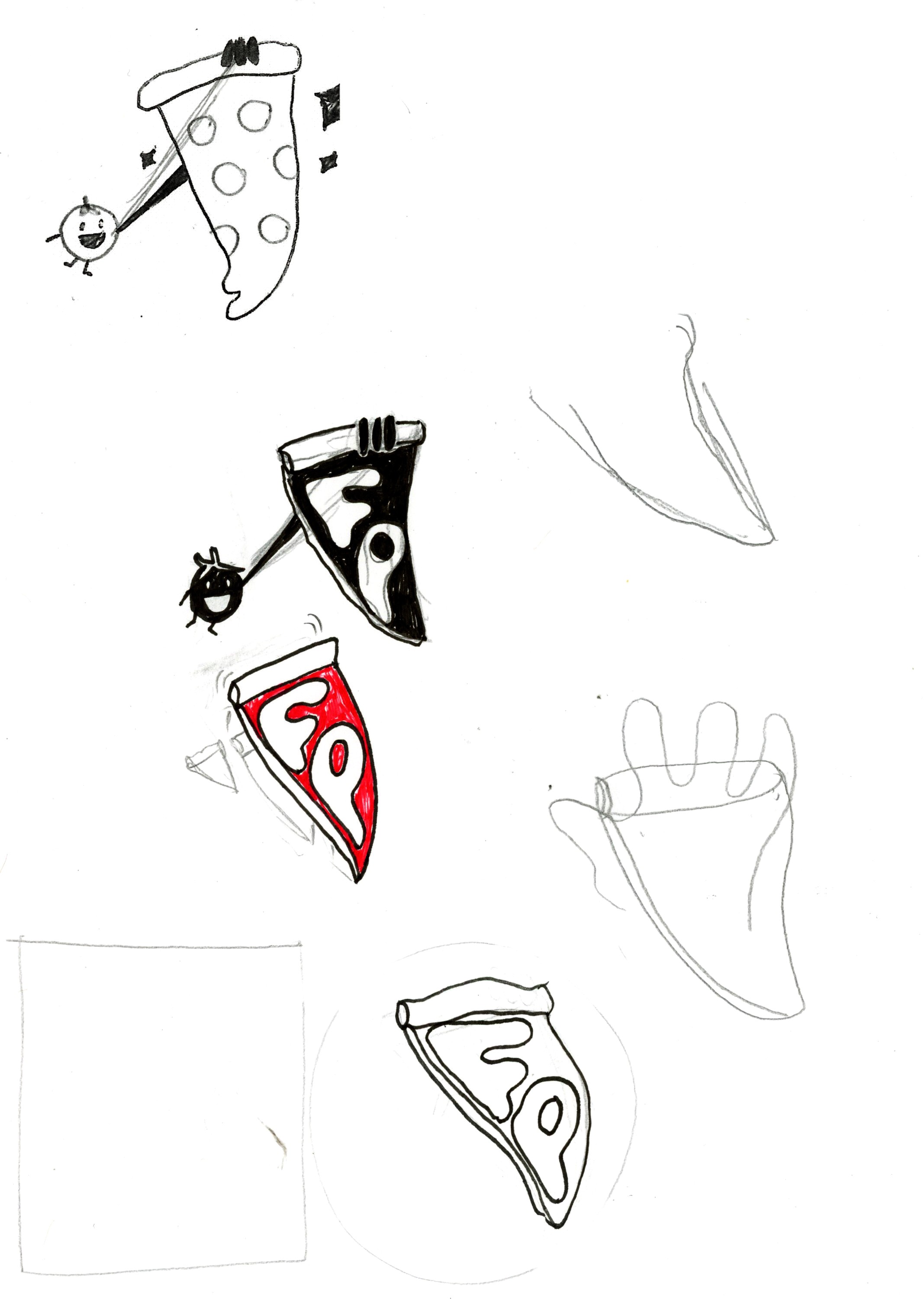 ^ Logo development. Slice concept by Claudia Lawrence-Clover (upper left) and development illustrations by Elena