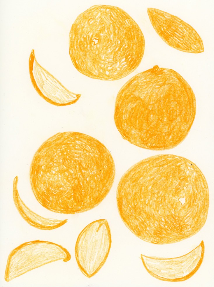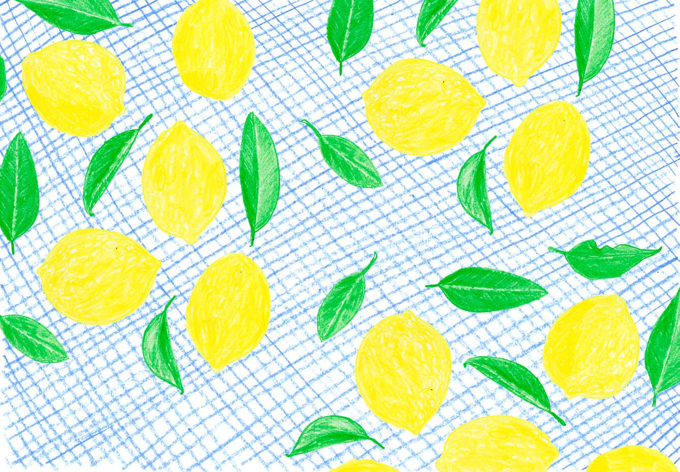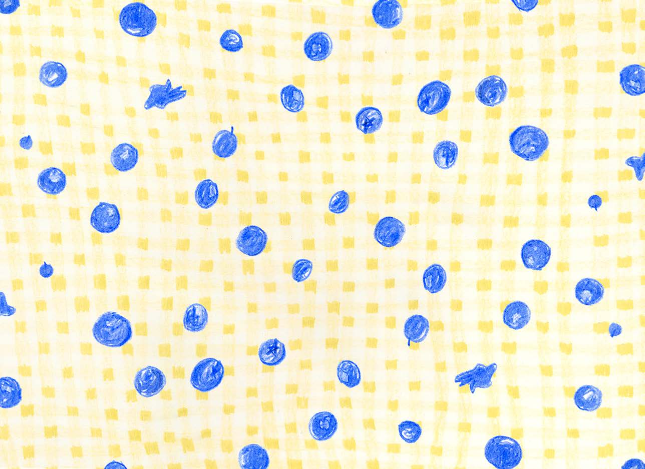 I approached my design concept with these empahases in mind, beginning with hand drawm patterns of gingham and a mesh-like cross hatch style. These patterns are meant to reflect a picnic blanket and fruit bags respectively (see my Knock Note design for a bag of oranges). I then incorporated pencil illustrations of fruit using Adobe photoshop, adjusting the hues of the background patterns according to visual harmony.