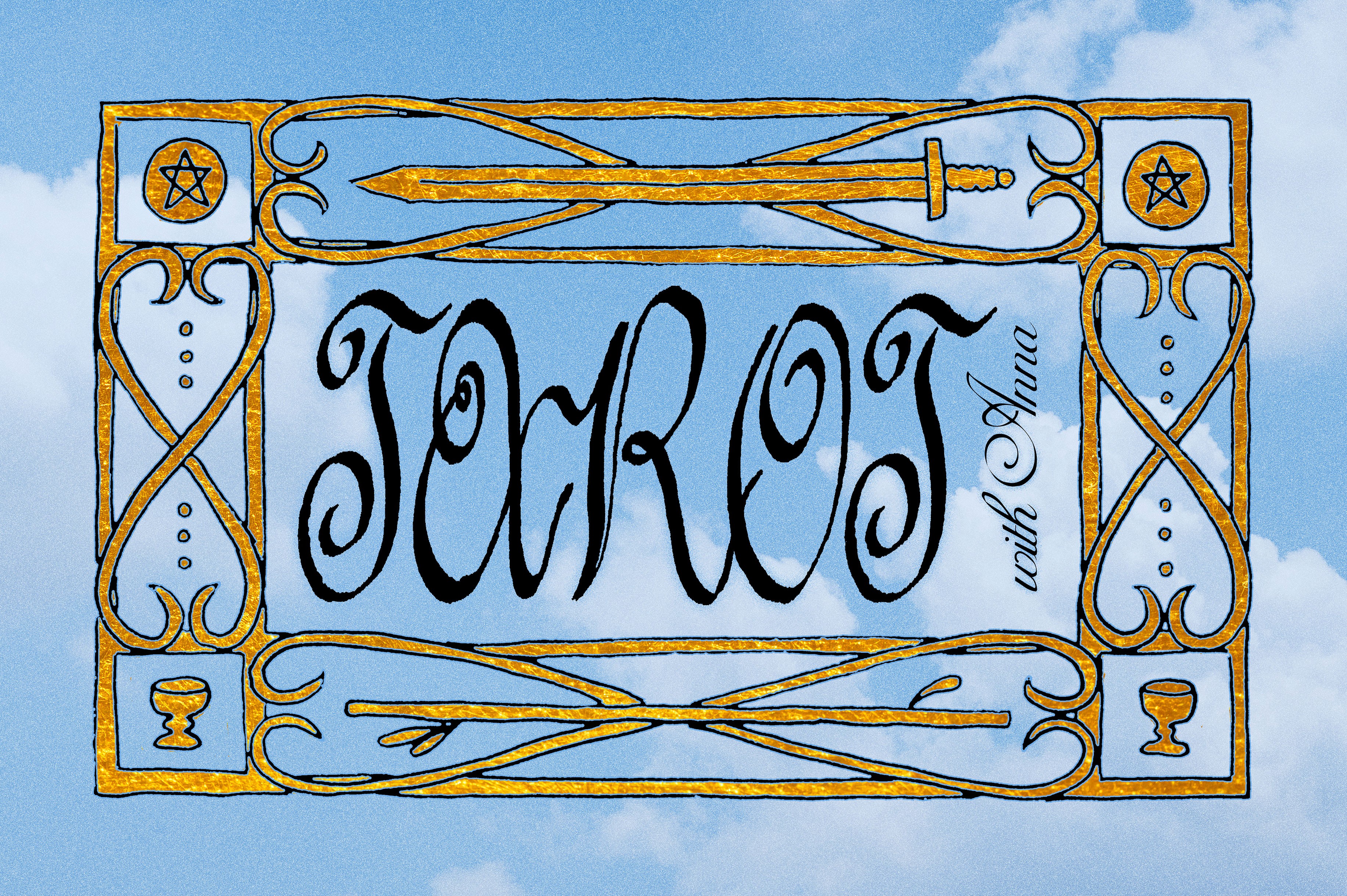 This frame features all the suits of the tarot deck: swords, pentacles, cups and wands.