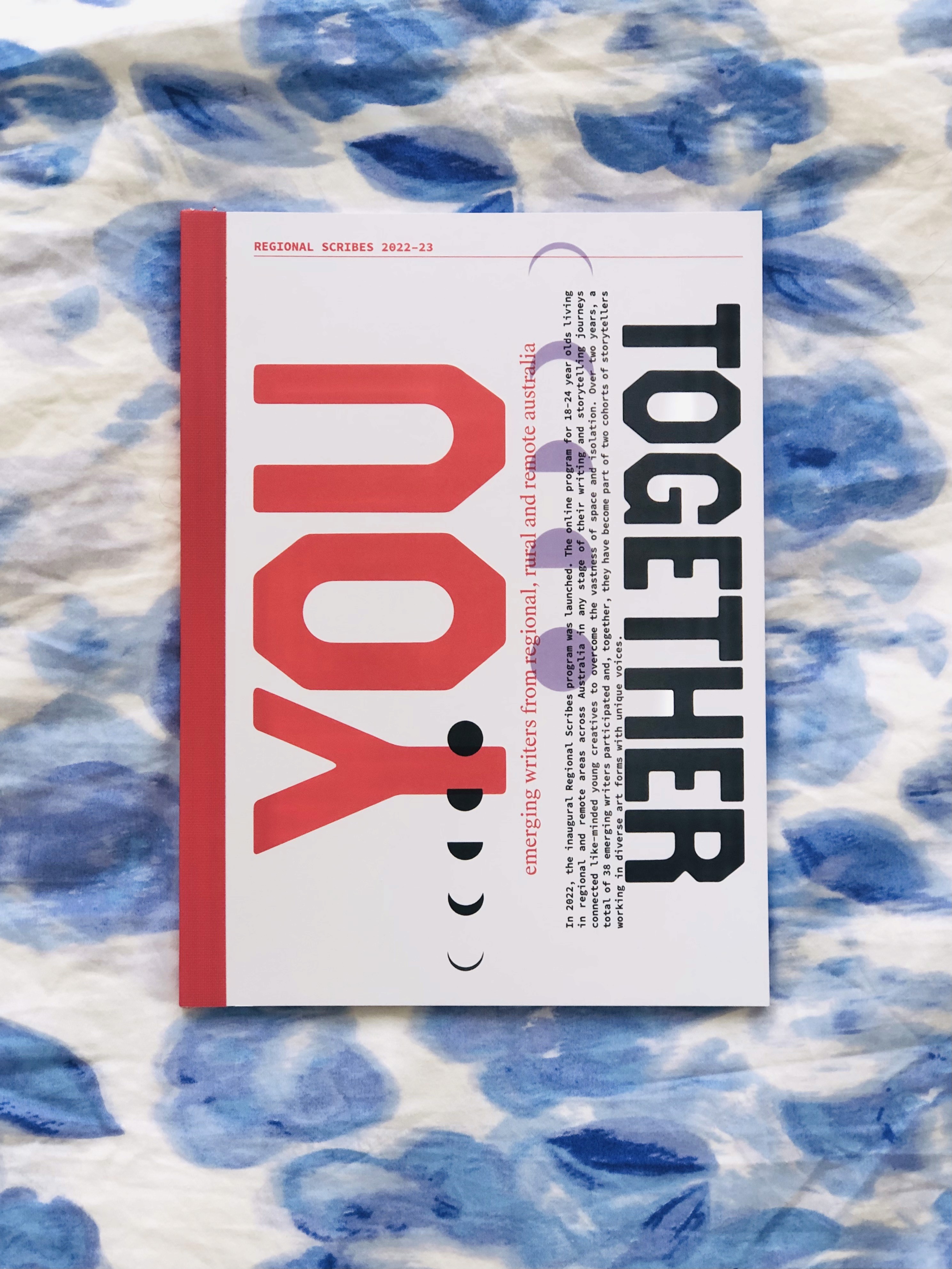 "You Together" is a collection of writings from the first and second cohorts of Regional Scribes. The online program for 18-24 year olds living in regional and remote areas across Australia connected like-minded creatives to overcome the vastness of space and isolation. Over two years, a total of 38 emerging writers participated, bringing together diverse art forms with unique voices.